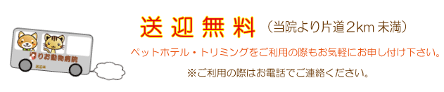 大切なペットを病院までお連れいただく事が難しい場合などは、お気軽にりお動物病院ペット送迎サービスをご利用下さい。